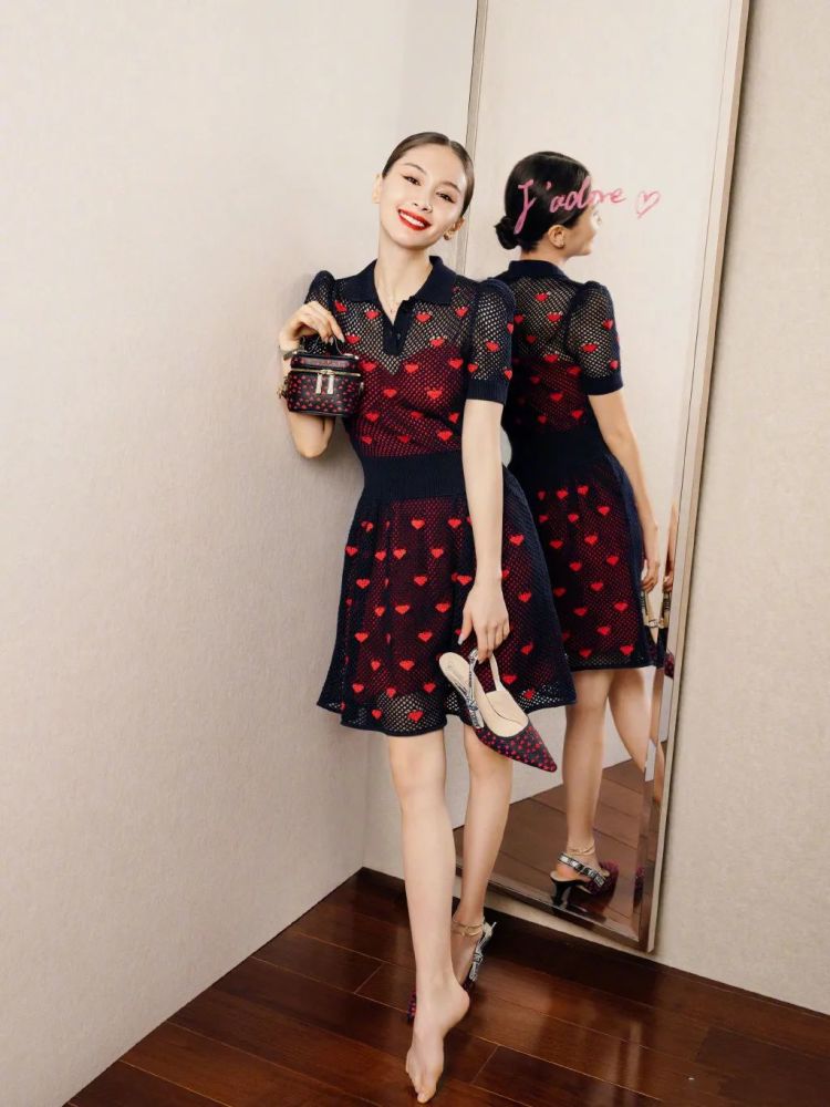 王子文的Polo衫也很不一般,网格镂空的设计竟没有一丝俗气,与小爱心印花的拼接倒是透露着一番俏皮可爱。