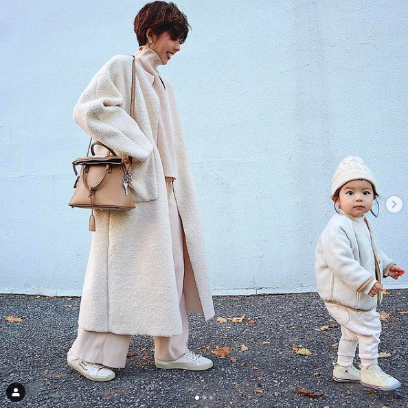 身高161的宝妈也可以穿上长外套,至于长外套到底压不压身高已经是个老生常谈的问题了,虽然说有些长外套对于小个子的女生并没有那么友好,但是长外套的版型和款式挑选好了依然可以穿出大长腿的效果。白色的长外套里面搭配一身色彩相同的造型搭配,运用同色系穿搭穿出优雅大方的魅力。