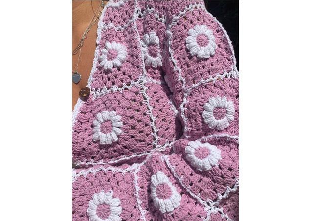 在编织的纹路中加入花朵,好像在玩填字游戏。以花朵代替平常的纽扣更是创意百分百。