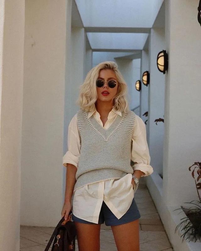 日常去逛街、散步的时候,想穿得简单一点,但又不想太过普通,那也可以选择衬衫+老头衫的穿法,随随便便一穿,就很有范儿。